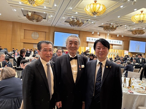 若林会長は石倉 正仁全国政連会長とともに、令和七年春の叙勲において旭日大綬章を受章された松本 純 元衆議院議員の受章祝賀会に出席しました。