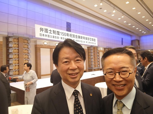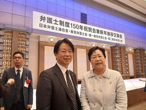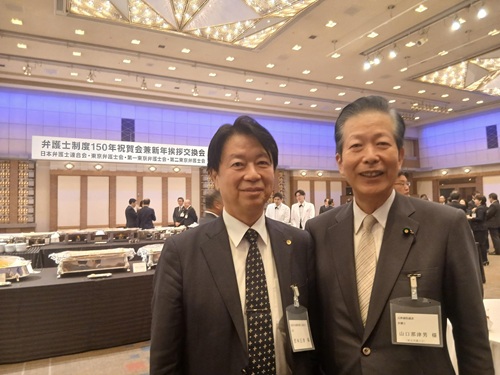 帝国ホテル(東京都千代田区)で開催された日本弁護士連合会の弁護士制度150年記念式典及び日本弁護士連合会、東京3弁護士会の祝賀会兼新年挨拶交換会に出席しました。渕上会長はじめ日本弁護士連合会の役員、来賓の国会議員と懇親を深めることができました。